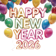 Happy New Year 2026 Colorful Balloons Celebration PNG IMAGE FREE DOWNLOAD