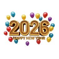 Happy New Year 2026 Colorful Balloons Celebration PNG IMAGE FREE DOWNLOAD