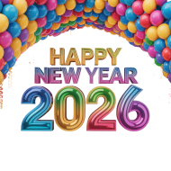 Happy New Year 2026 Colorful Balloons Celebration PNG IMAGE FREE DOWNLOAD