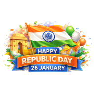 This Happy Republic Day PNG includes the Indian flag, balloons, and festive elements with “26 January” text. Perfect for banners, social media posts, thumbnails, and event creatives. Transparent background for easy editing.